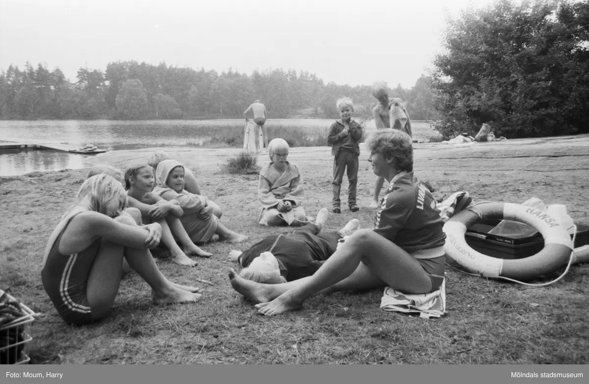 Livräddningsundervisning vid sjön Horsika i Mölndal, år 1984.