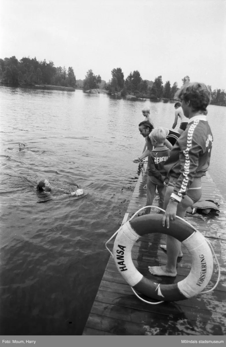 Titel: Livräddningsundervisning vid sjön Horsika i Mölndal, år 1984. För mer information om bilden se under tilläggsinformation.