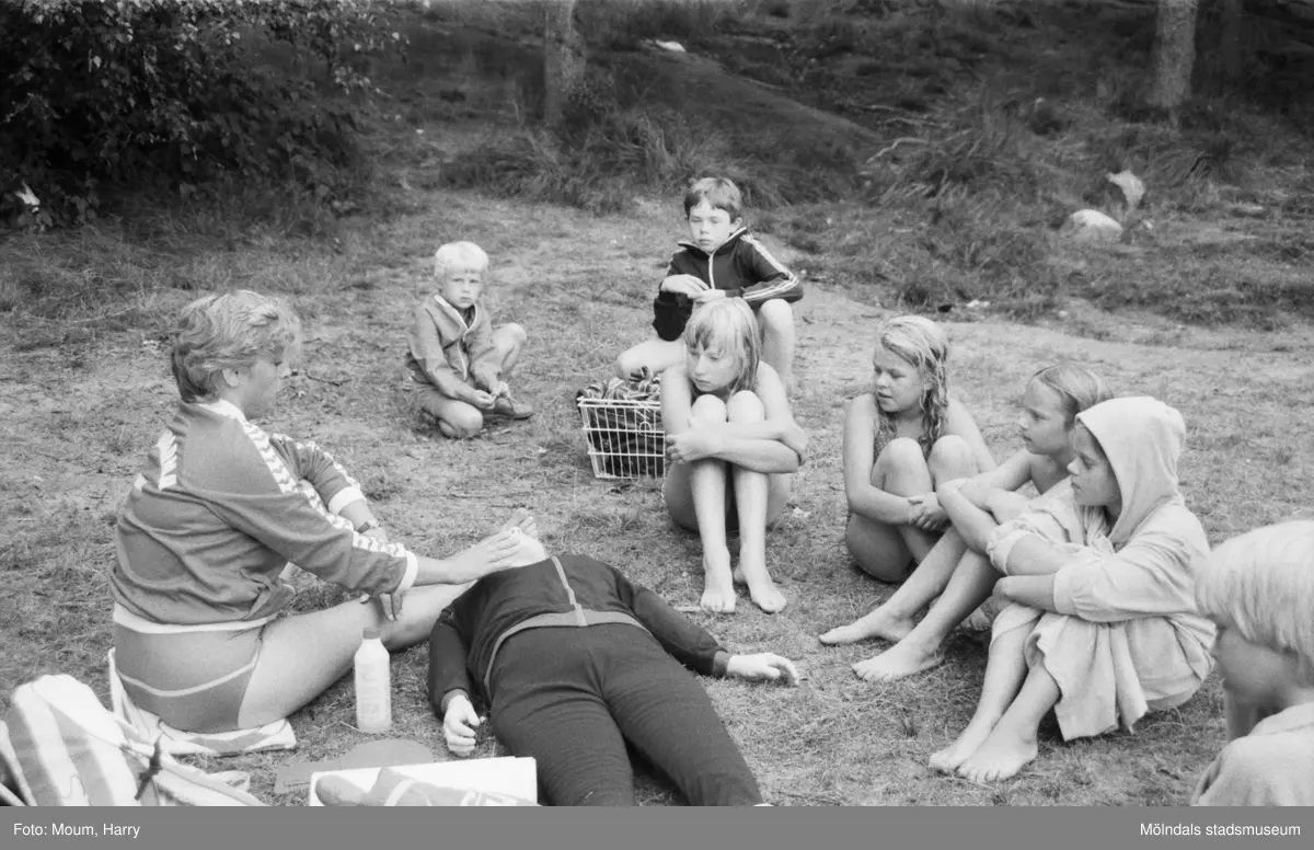 Livräddningsundervisning vid sjön Horsika i Mölndal, år 1984.