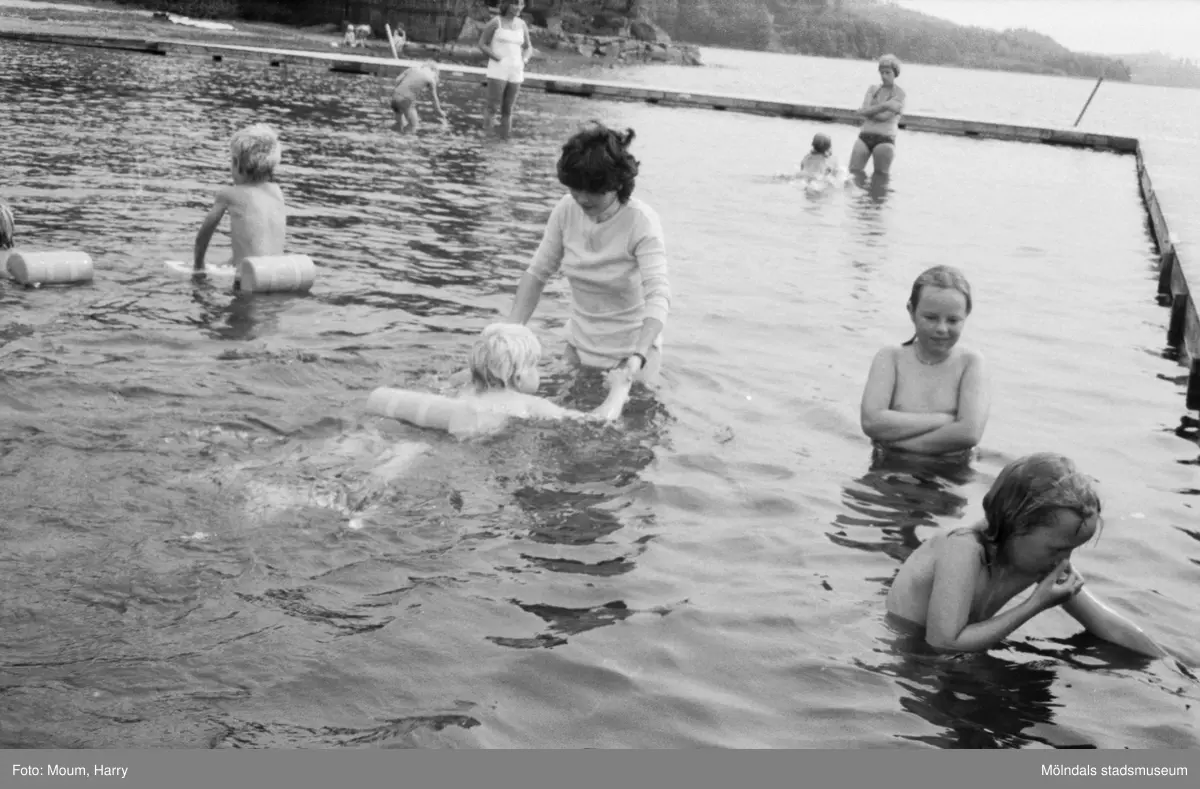 Simskola vid Västra Ingsjön i Lindome, år 1984. "Full fart på undervisningen. Men det gäller att hålla för näsan när man skall doppa sig."