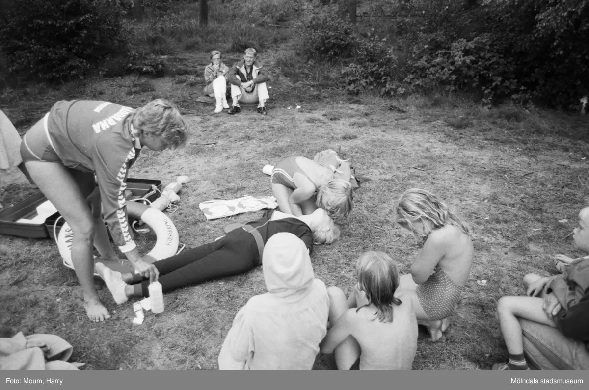Livräddningsundervisning vid sjön Horsika i Mölndal, år 1984. "En docka fick vara "offer" på kursen vid Horsika."