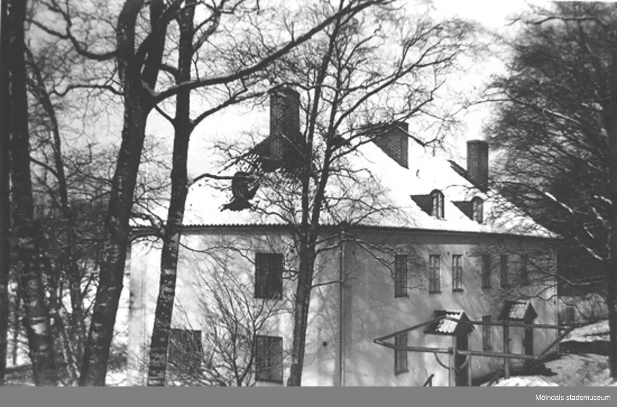 En vit snöbeklädd byggnad som kallades "Flickornas arbetshem" vid Skolhemmet Stretered. 1950-tal.