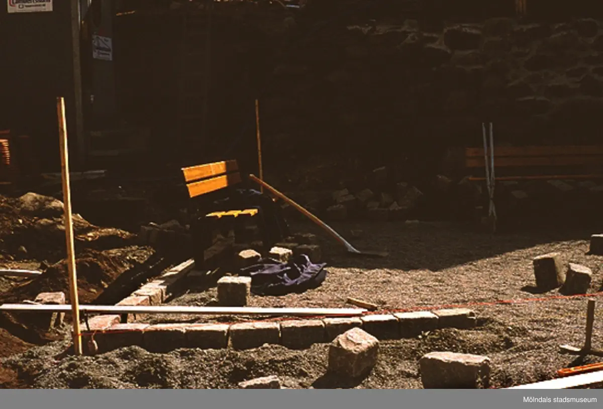 Titel: Stensättning vid Lyktplatsen, Norra Forsåkersgatan i Kvarnbyn, april 1993.