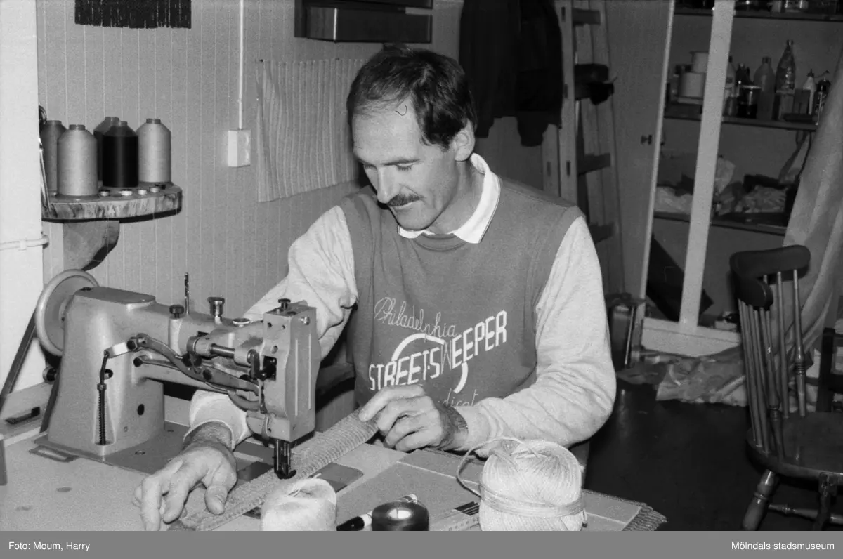 Lindome Tapetserarverkstad vid Spårhagavägen i Lindome, år 1985. Lars Fagerberg.