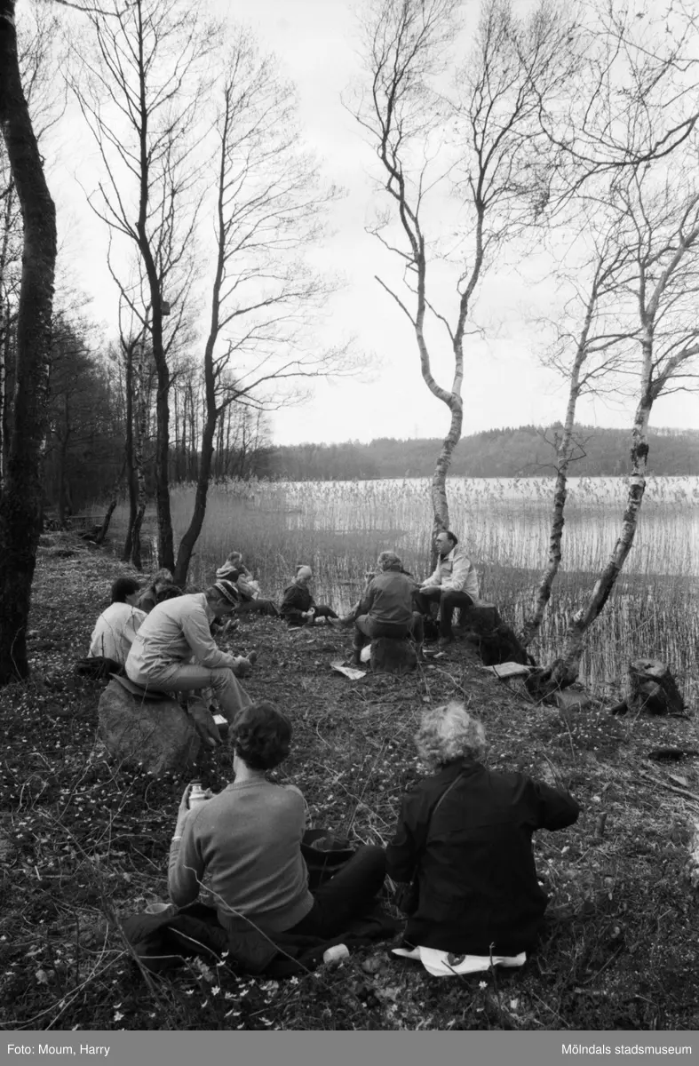 Kållereds hembygdsförening anordnar sockenvandring runt Tulebosjön i Kållered, år 1985.