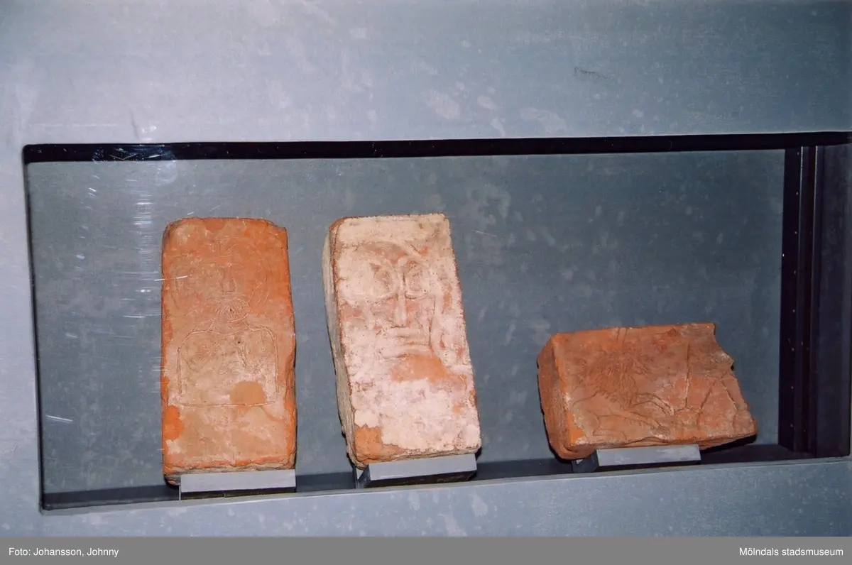 Tegelstenar. Klotter på en fönsterruta. Från utställningen "Alltså finns jag" som handlade om graffitikultur. Pågick 25 januari - 25 maj 2003 på Mölndals Museum (senare Mölndals stadsmuseum). Produktionen var ett samarbete mellan Mölndals Museum, Vitlycke museum, Bohusläns museum, Västergötlands museum och Konstkonsulenterna i Västra Götalandsregionen.