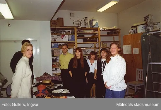 Ungdomar från Burgårdens gymnasium som ska visa baddräkts modet från förr, på Mölndals museum, familjesöndagen den 25 oktober 1992.