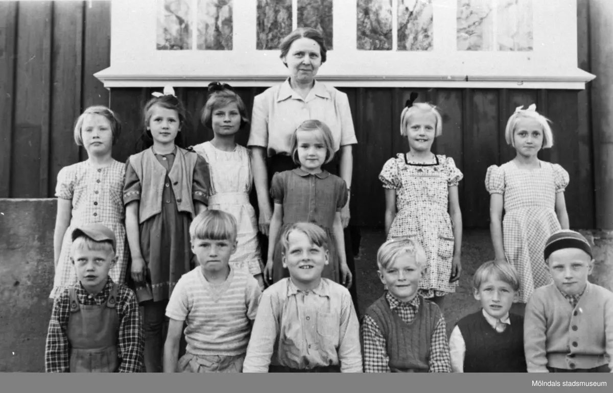 Valdeborg Johansson med skolklass (B-skola), Nårunga, vårterminen 1951.