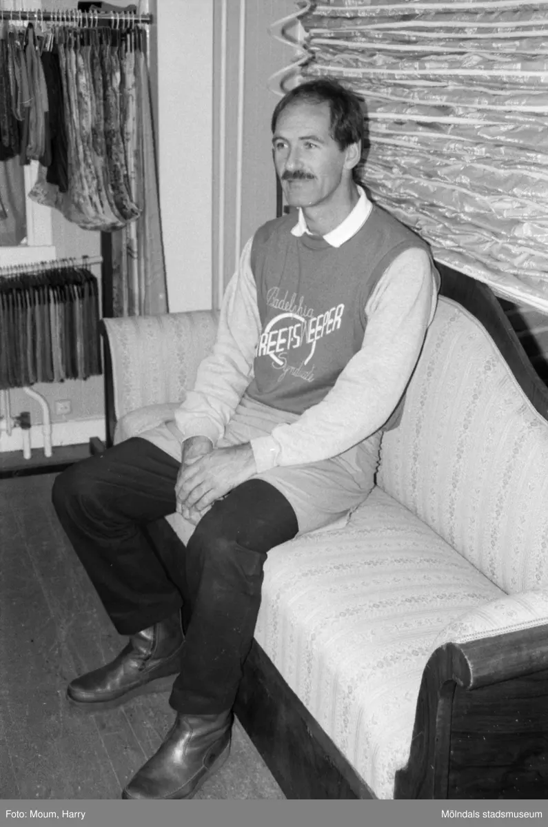 Lindome Tapetserarverkstad vid Spårhagavägen i Lindome, år 1985. Lars Fagerberg.