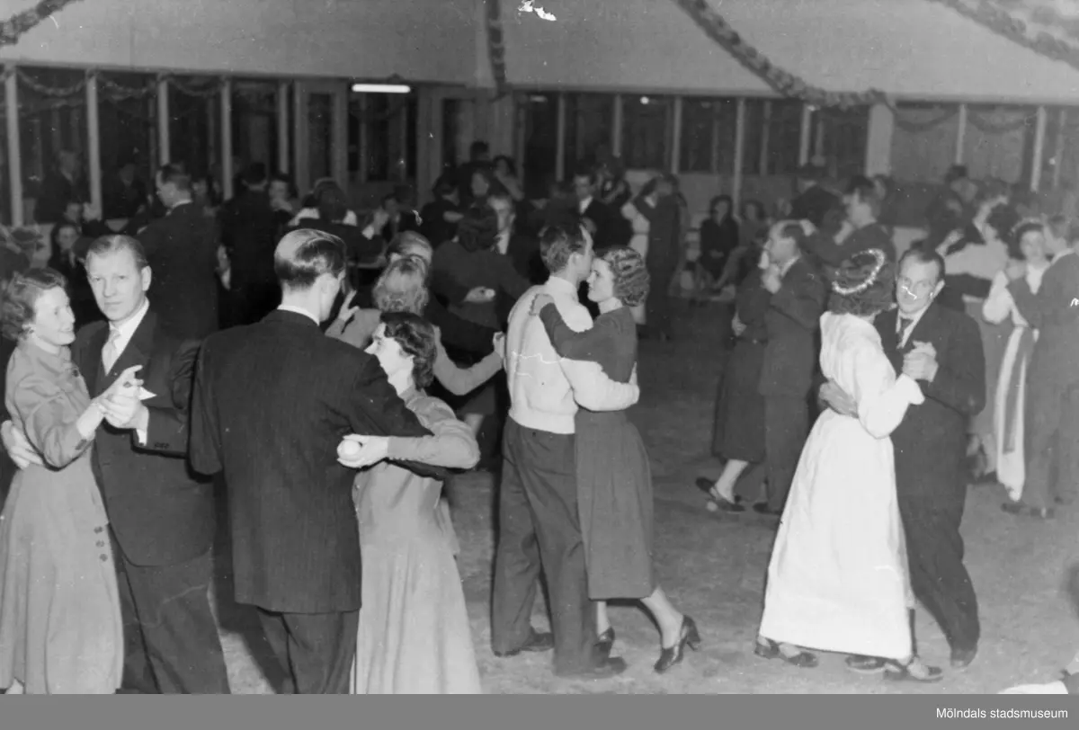 Luciafest på August Werners fabrik 1949. Luciatärnor bland de dansande på dansgolvet.
