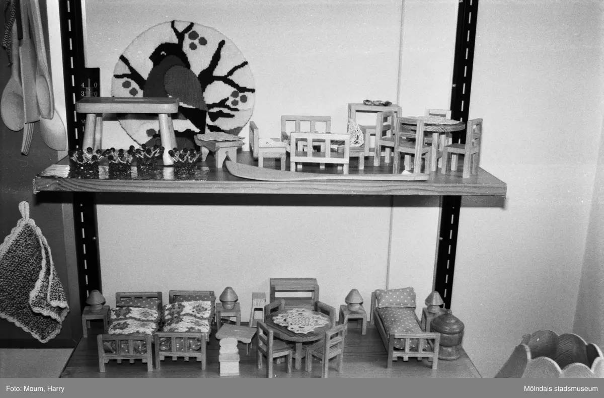 Pensionärsverksamheten kallad "Hobbyn" vid Våmmedalsvägen i Kållered, år 1983. "Det går att fynda bland sköna saker gjorda av flinka händer."