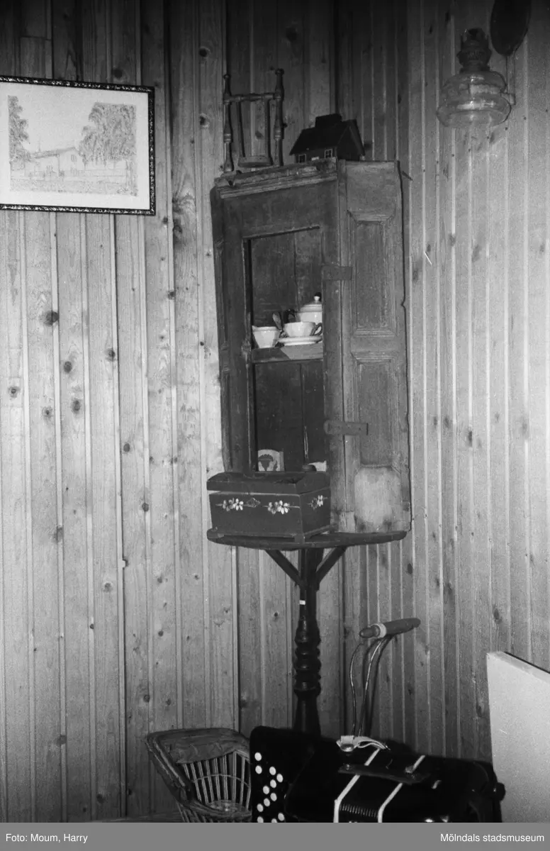 Ett hörnskåp på hembygdsgården i Långåker, Kållered, år 1983.