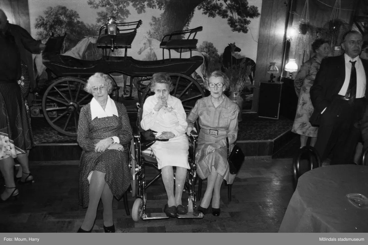 Skolträff på Kållereds Värdshus, år 1983. "Lärarinnorna Greta Alm Andersson, Greta Härnqvist och Jessie Thölen hade stämt träff med sina elever från tjugotalet."