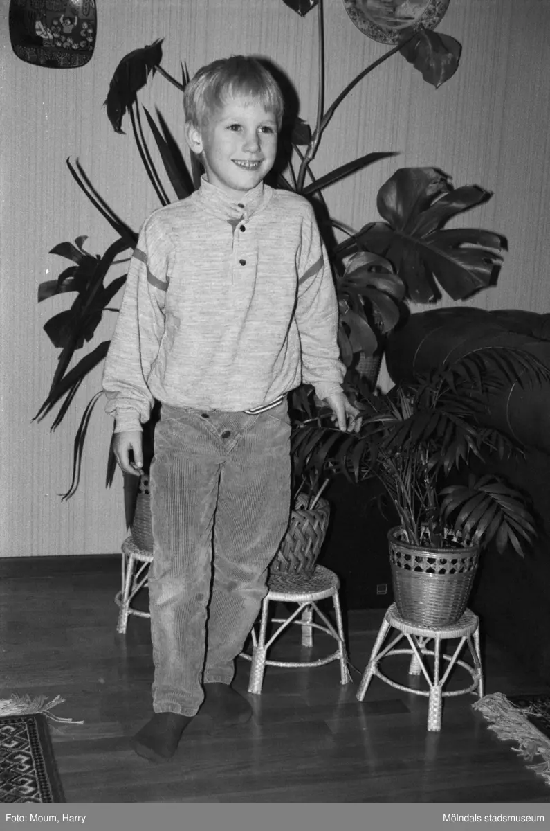 Sexårige Johan Andersson i sitt hem på Högenvägen i Kållered, år 1984. "Sexårige Johan Andersson, Kållered, räddade livet på sin kamrat Patrik."