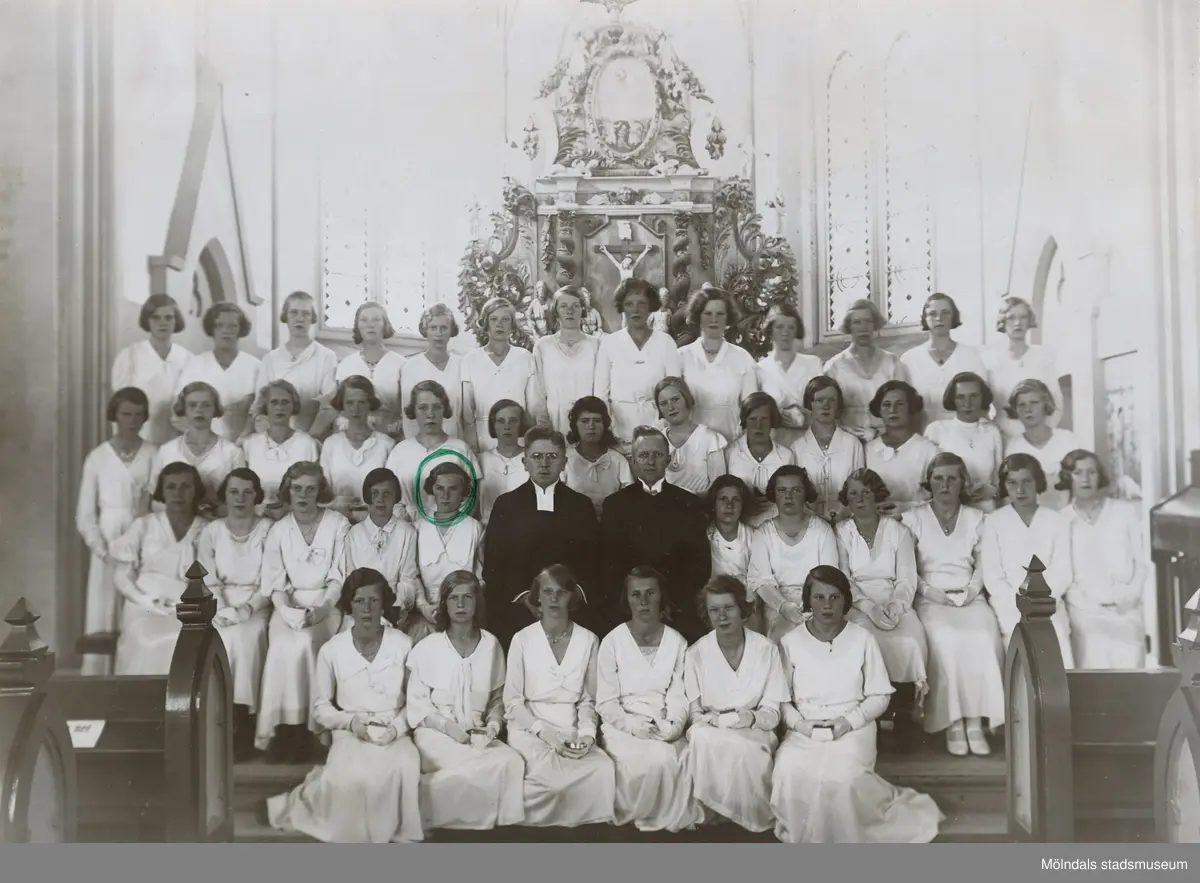"Min konfirmation i Mölndals Kyrka 1933, Kyrkoherde Laurell, Pastor Lindblom."