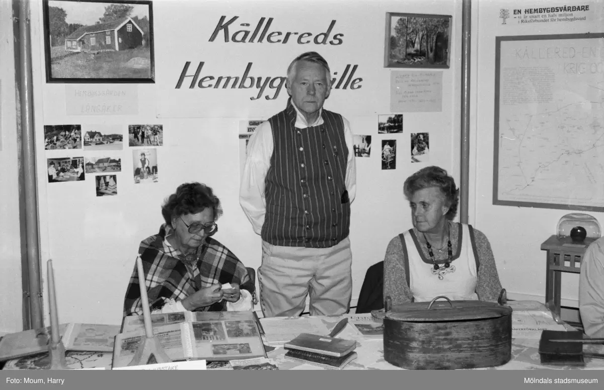 Föreningarnas dag i Kållered år 1984. "Ulla och Göte Andersson samt Lilly Edwardsson hade klätt sig i hembygdsdräkter framför gillets monter."