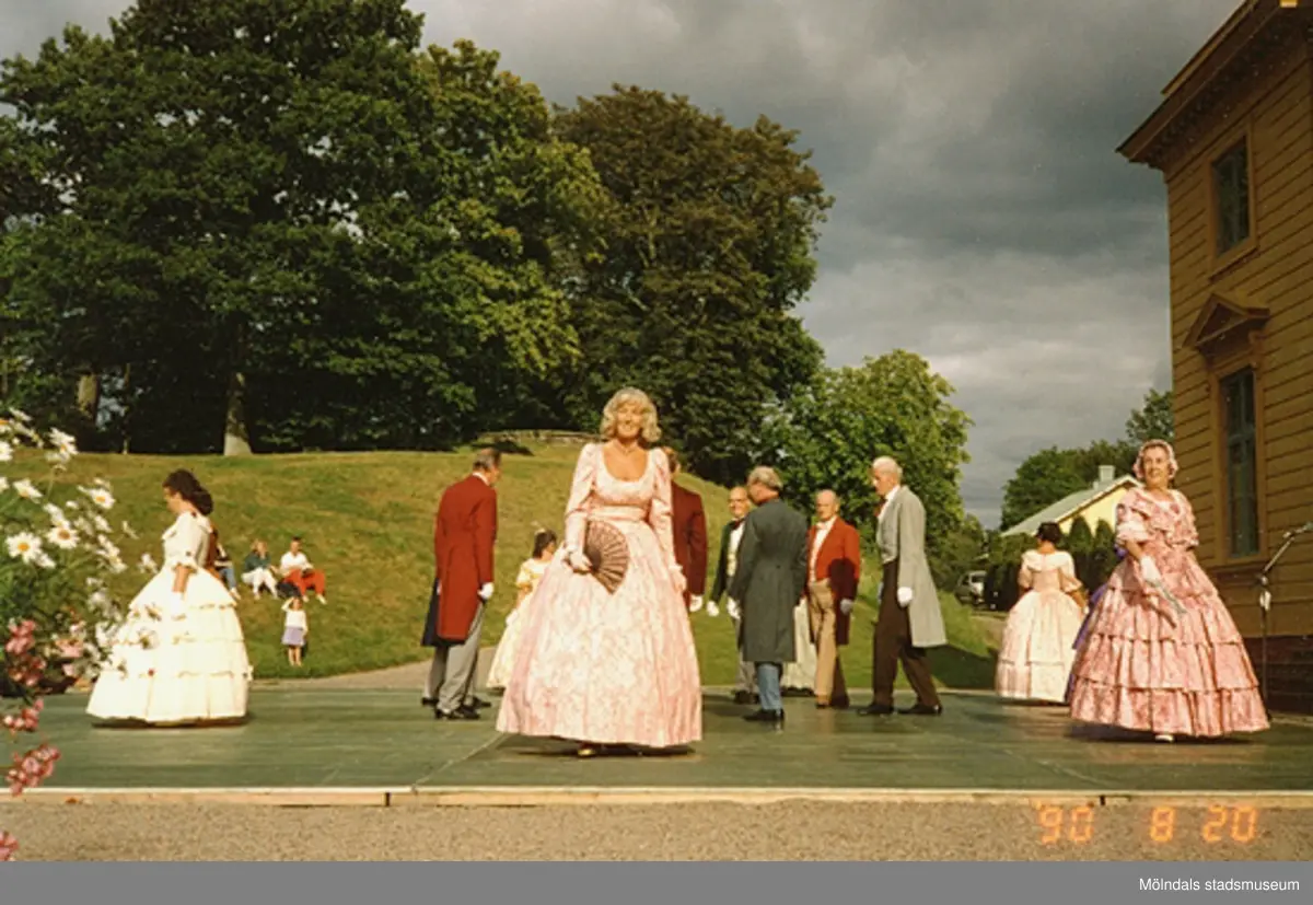 Dansuppvisning framför Gunnebo slott, med dansare i kläder från 1800-talets mitt. 20 augusti 1990.