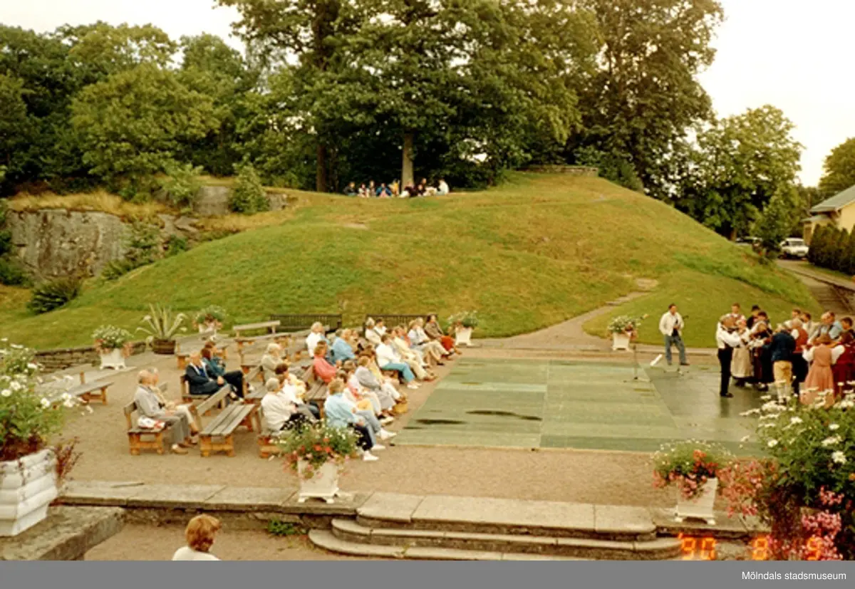 Folkdans inför publik vid Gunnebo slotts framsida, augusti 1990.