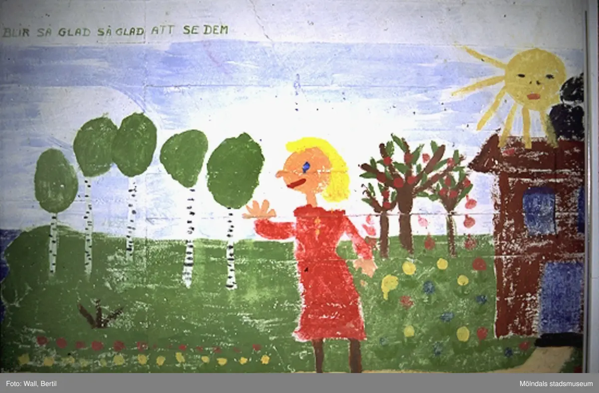 Teckningar målade av barn, 4-6 år, på Toltorps lekskolor. Teckningarna utfördes 1953 för att utsmycka Lackarebäckshemmet. Motiven är hämtade ur ett antal välkända sagor.