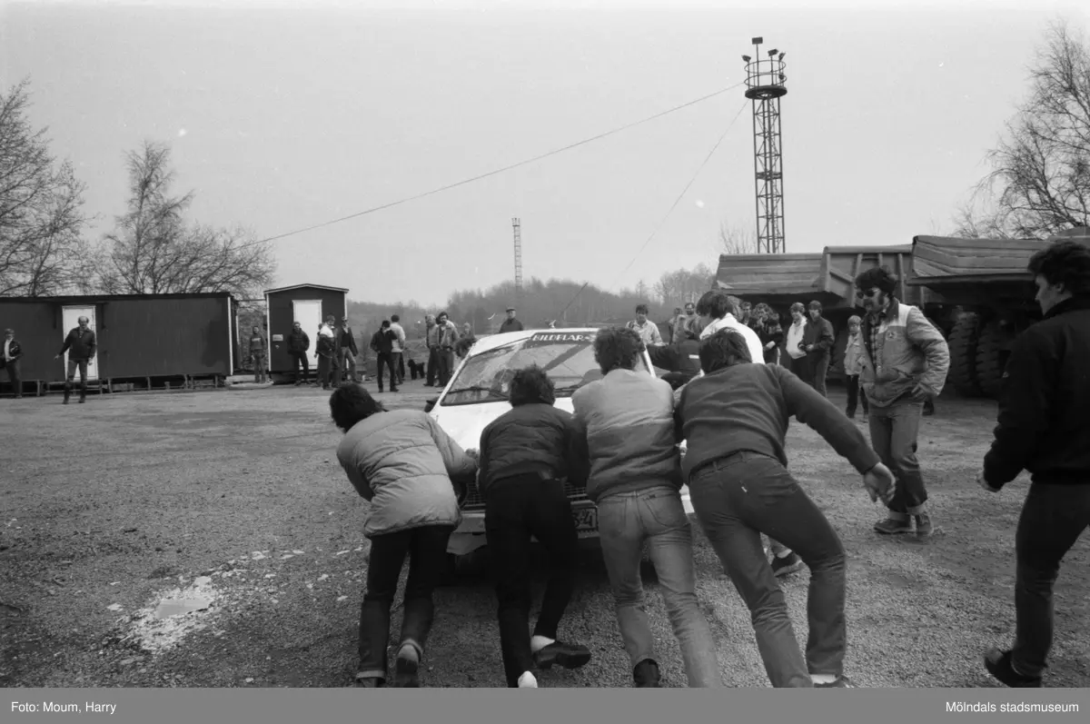 Titel: Rallytävlingen Bilexa-knixen körs på stenbrottet Sabemas område, år 1984. För mer information om bilden se under tilläggsinformation.