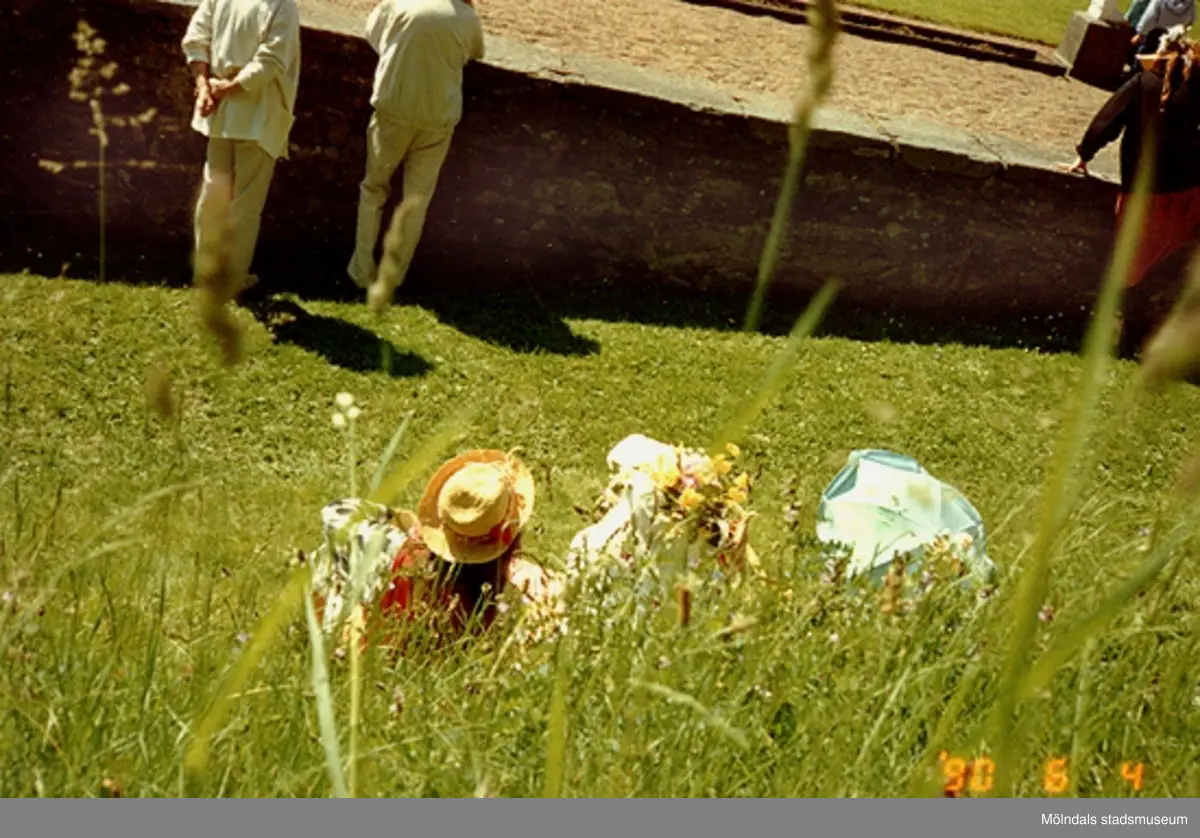Personer fotograferade bakifrån. Gunnebo slott, juni 1990.