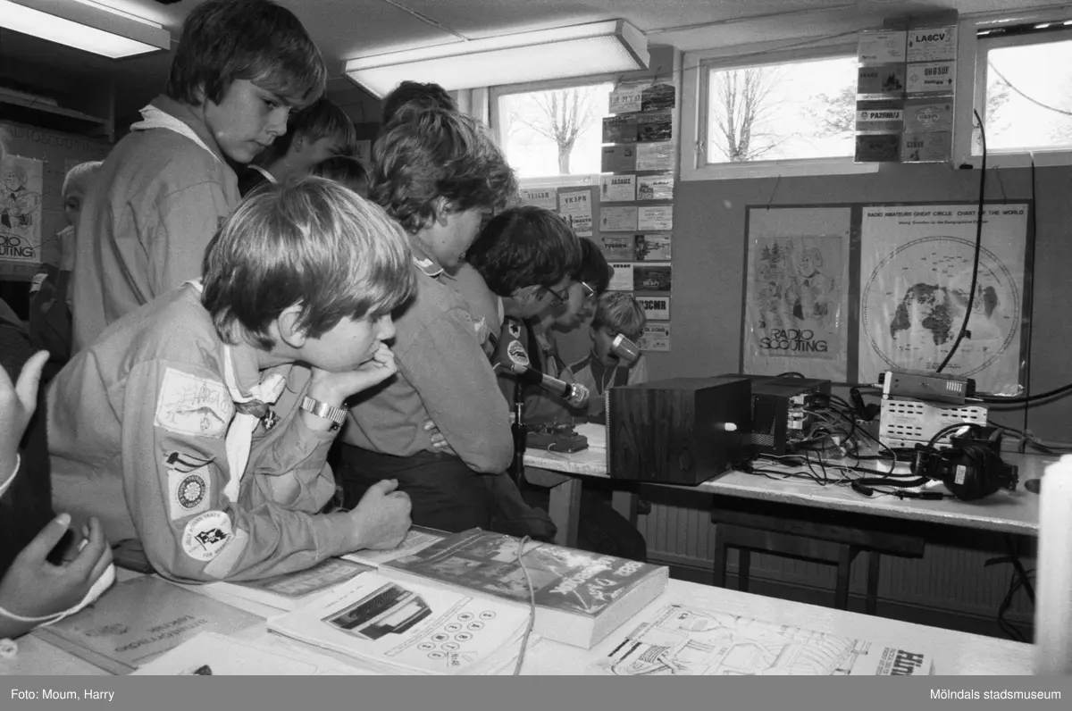 Scouter från Annestorpsdalens scoutkår i Lindome deltar i Jamboree on the air, JOTA, år 1983. "SK6PS calling. Hur blir det med förbindelsen?"