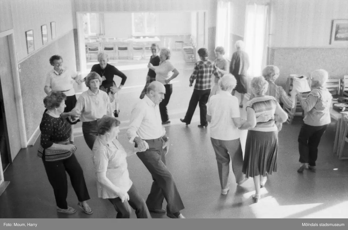 Mölndals-korpen anordnar aktiviteter för äldre i Mölndal, år 1984. Gammeldans. "Gammeldans är fin motion. Här en hambo." Kortet är taget i Kållereds kommunalhus, rivet i början av 1990-talet. Adress: Streteredsv. 3.
