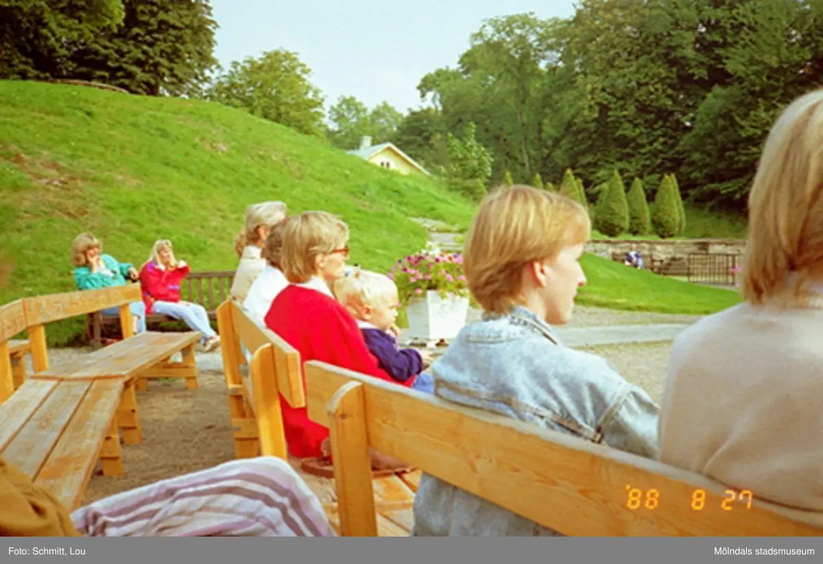 Publik vid musik/dansarrangemang på scenen vid Gunnebo slott.