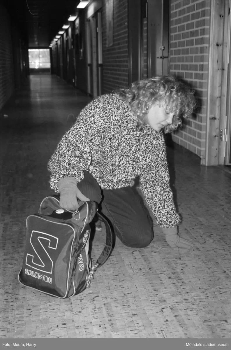 Mattorna på Ekenskolan i Kållered ska bytas ut p.g.a. allergibesvär, år 1985. "Helena Johansson klass 9 A i Ekenskolan har inte haft besvär av den omdiskuterade mattan."