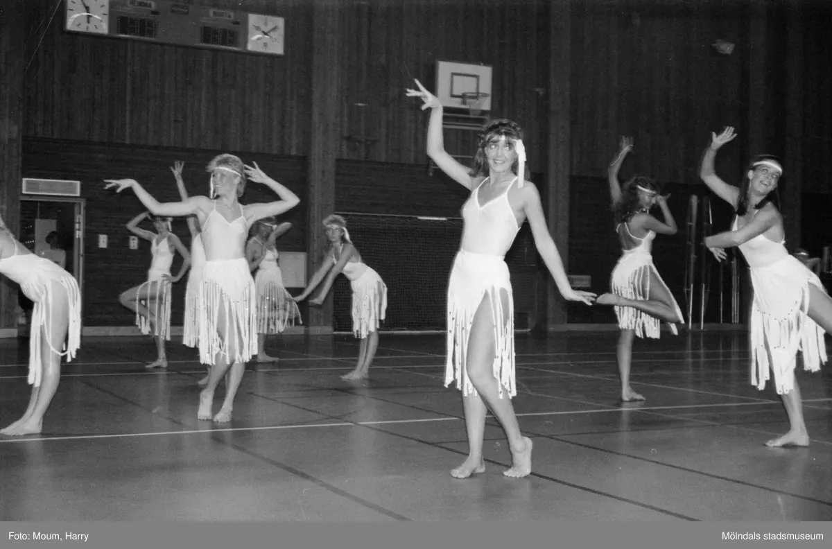 Kållereds Gymnastikförening har uppvisning i Ekenhallen i Kållered, år 1985. "Gun Goneras balettflickor bjöd på en fartfylld show."