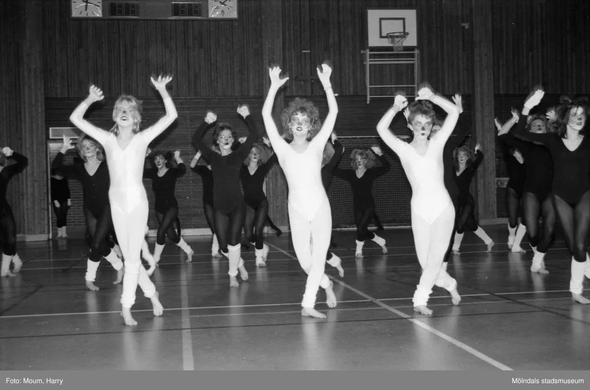 Titel: Kållereds Gymnastikförening har uppvisning i Ekenhallen i Kållered, år 1985. För mer information om bilden se under tilläggsinformation.