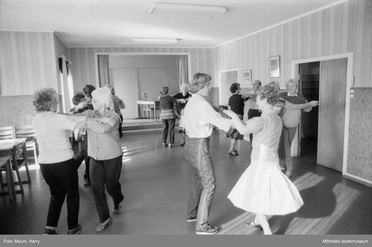 Mölndals-korpen anordnar aktiviteter för äldre i Mölndal, år 1984. Gammeldans. Kortet är taget i Kållereds kommunalhus, rivet i
