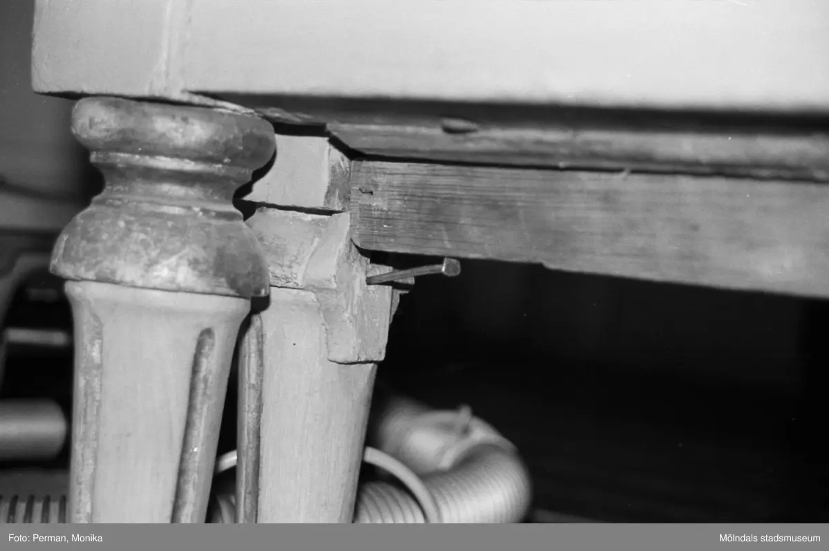 Antikvarisk storstädning på Gunnebo slott 1992. Detaljer av stolsben.