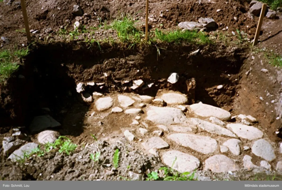 Ett utgrävningsschakt i Gunnebo slotts köksträdgård "A", augusti 1995.