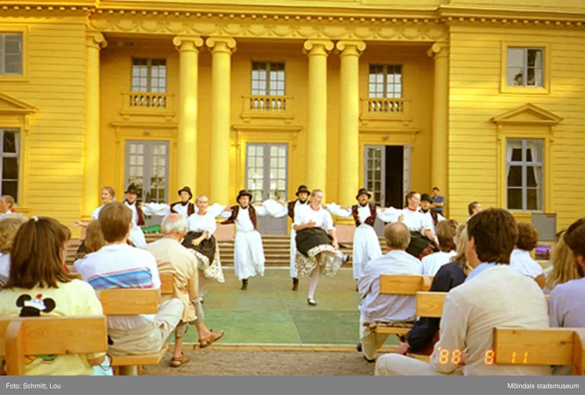 Titel: Musik- och dansarrangemang på scen framför slottet.