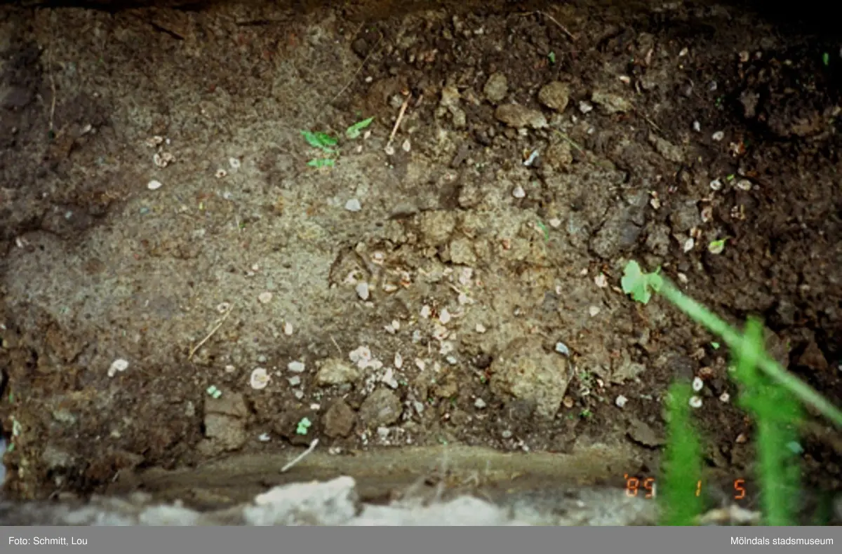 Ett utgrävningsschakt i Gunnebo slotts köksträdgård "A", augusti 1995.