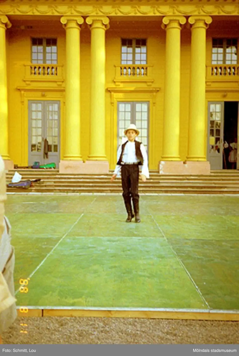 Titel: Musik- och dansarrangemang på scen framför slottet.
