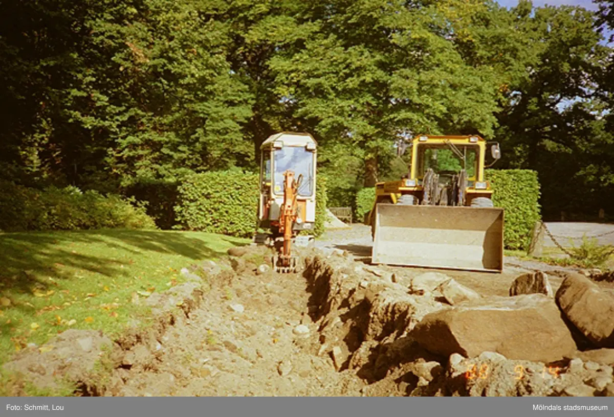 Grävarbeten, norra sidan av parken, vid Gunnebo slott 1988.