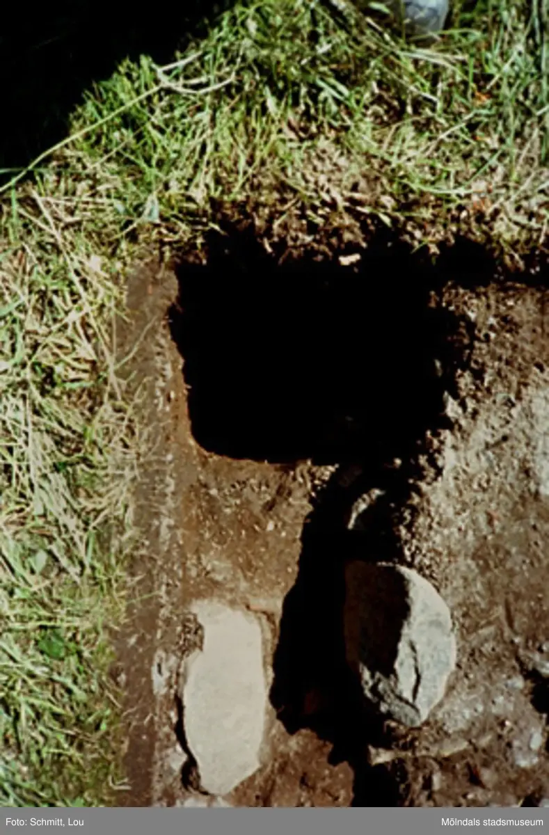 Ett utgrävningsschakt i Gunnebo slotts köksträdgård "A", augusti 1995.