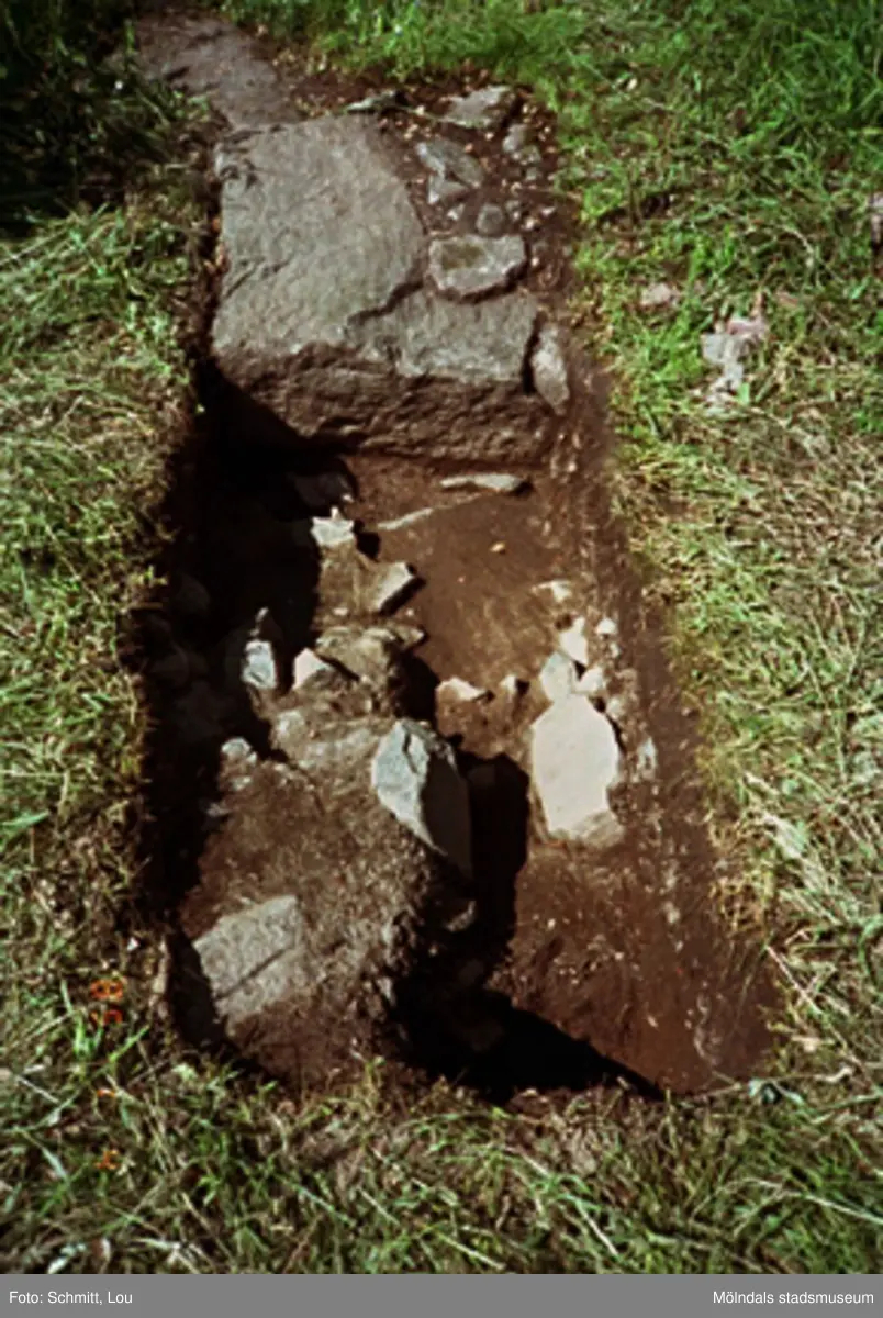 Ett utgrävningsschakt i Gunnebo slotts köksträdgård "A", augusti 1995.