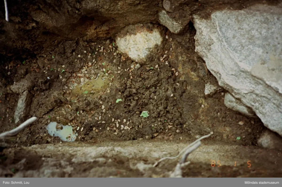 Ett utgrävningsschakt i Gunnebo slotts köksträdgård "A", augusti 1995.