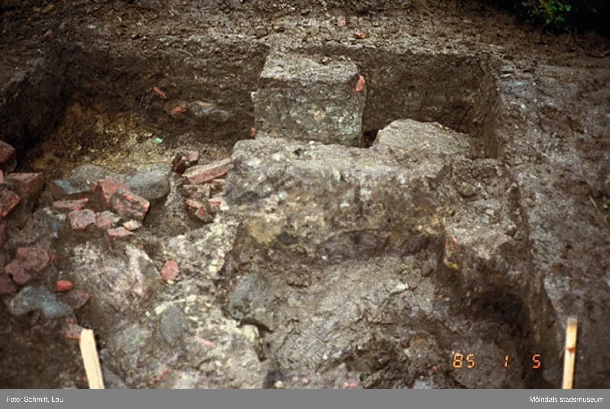 Ett utgrävningsschakt i Gunnebo slotts köksträdgård "A", augusti 1995.