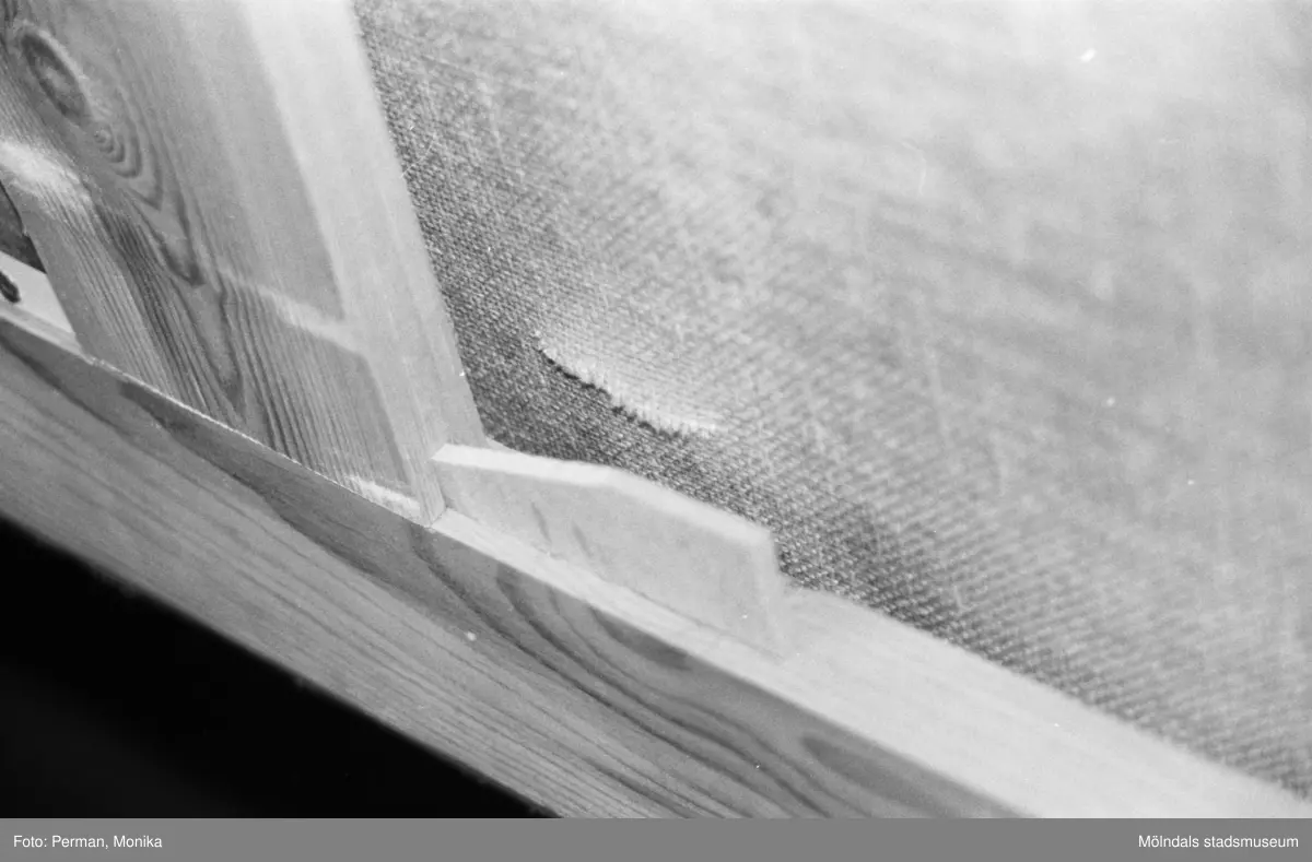 Antikvarisk storstädning på Gunnebo slott 1992. Baksida av en trasig tavelduk.