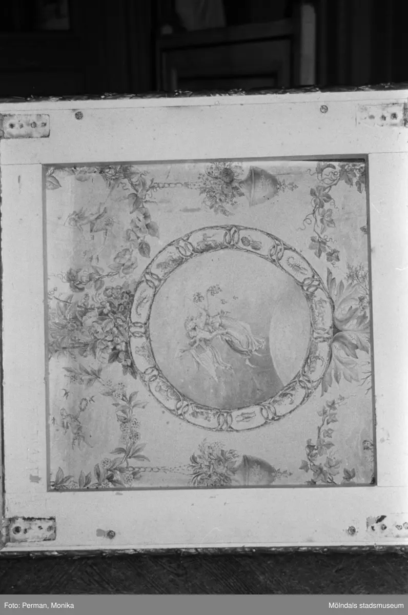 Antikvarisk storstädning på Gunnebo slott 1992. Ett änglamot inom en ram.