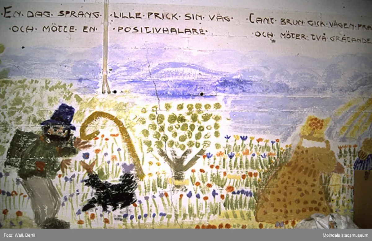 Teckningar målade av barn, 4-6 år, på Toltorps lekskolor. Teckningarna utfördes 1953 för att utsmycka Lackarebäckshemmet. Motiven är hämtade ur ett antal välkända sagor.