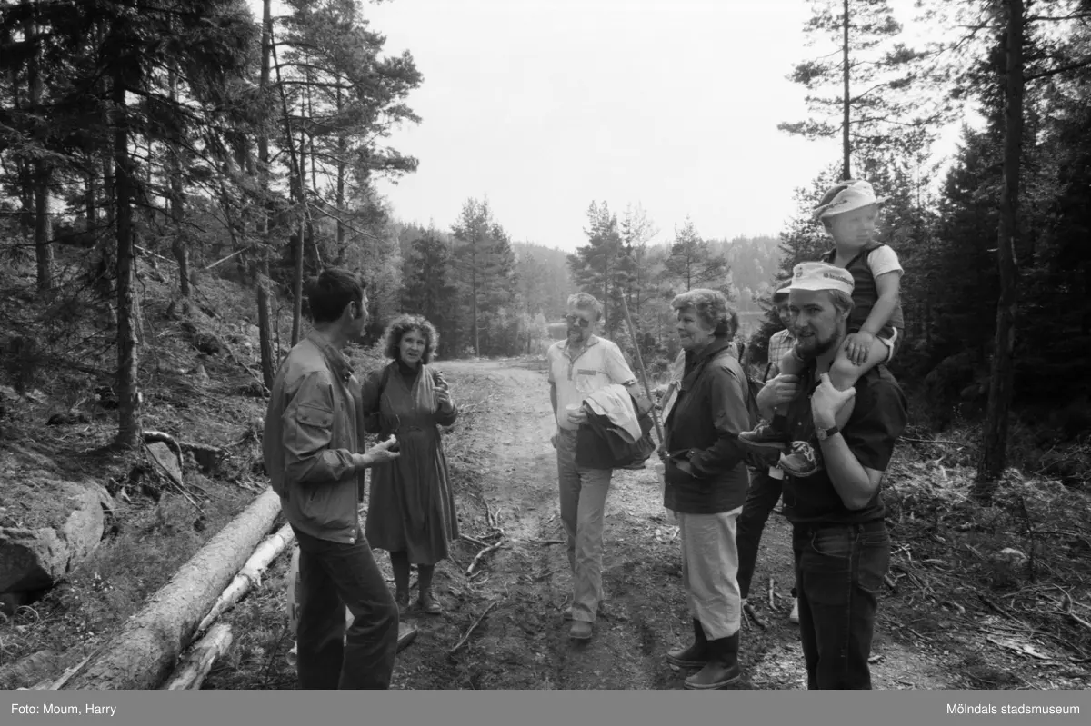 Vandring vid Mattjärn med Lindome hembygdsgille, år 1984. Andra personen från vänster är Kajsa Karlsson.