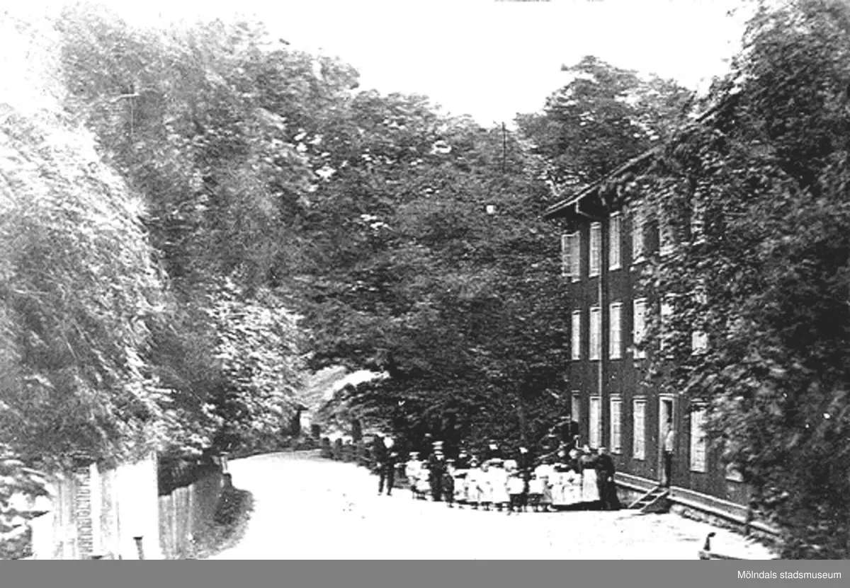 Anderstorps fabriker i Lindome, cirka 1900. Samling utanför Böggninga. (anteckning av H.B).