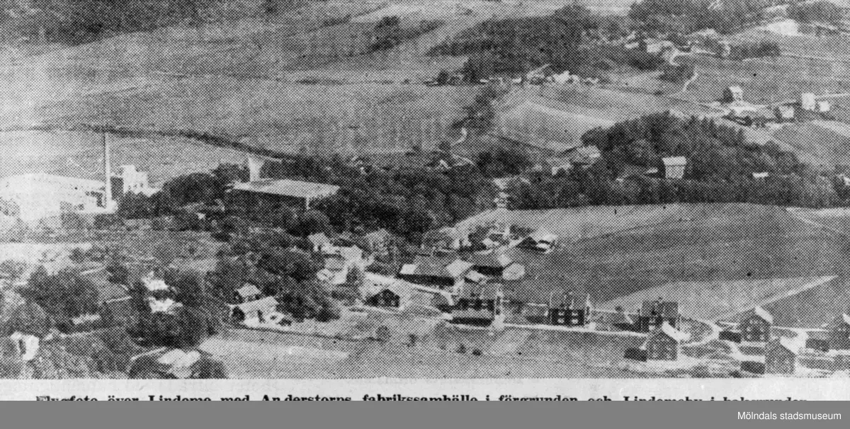 Flygfoto över fabrikerna och Lindomeby, 1945.