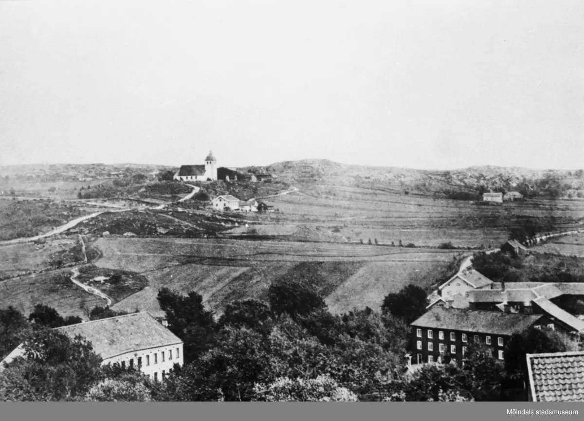 Vy över Annestorp mot kyrkan. Man ser det gamla ”Anderstorps fabriker” som revs 1909 till vänster. Till höger ser man ”Böggninga” som var arbetarbostäder för fabriksarbetare. Det fanns 52 rum och 3 kök (ett i varje våning), ej vatten och avlopp, WC på baksidan av huset. Årtal okänt.
