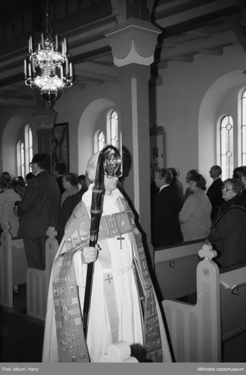 Biskop Bertil E. Gärtner besöker församlingen i Lindome, år 1983.